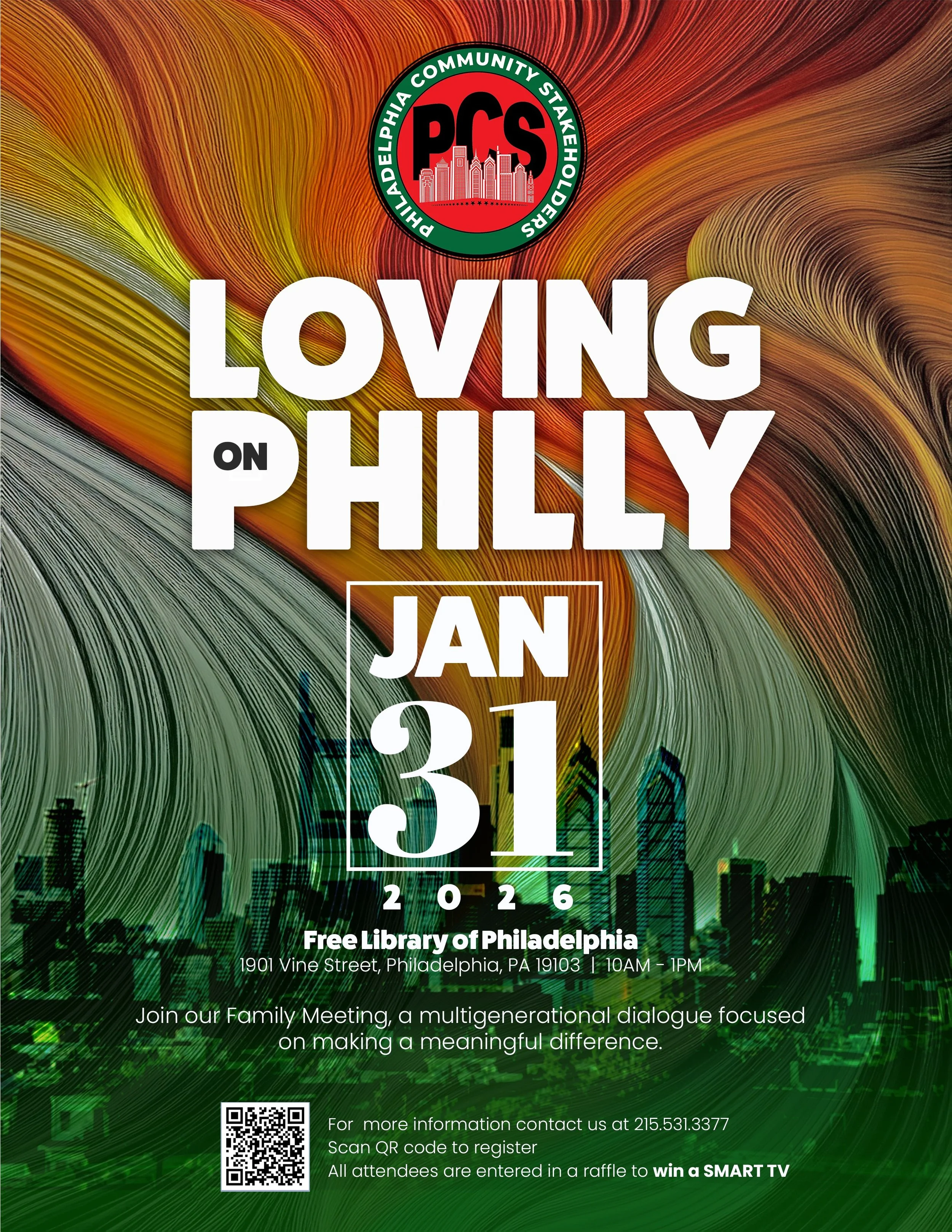 Jan 31 10:00 AM10:00 Philadelphia Community Stakeholders Loving on Philly Town Hall Saturday, January 31, 2026 10:00 AM 1:00 PM 10:00 13:00 Google Calendar ICS View Event →