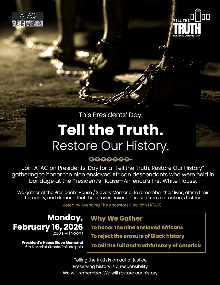 Avenging The Ancestors Coalition Tell the Truth Gathering Monday, February 16, 2026 12:00 PM 1:00 PM 12:00 13:00 Google Calendar ICS